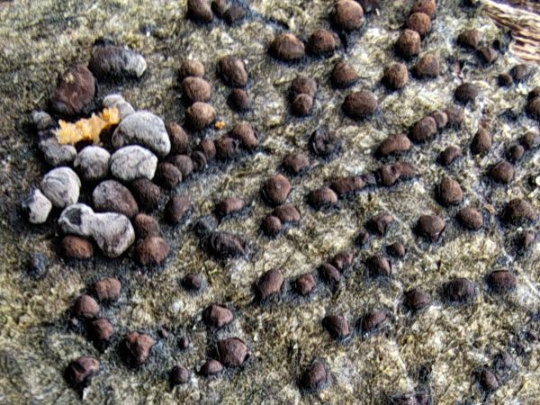 To give a sense of scale all the lichen photographs noted specifically as close up use the scale of the photographed scale bar below which is in millimetres i.e. 1mm to 3mm..