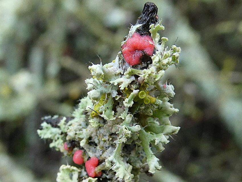 A lichenicolous fungus is a parasitic fungus that only lives on lichen.