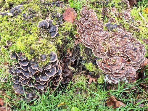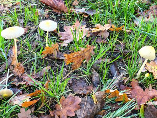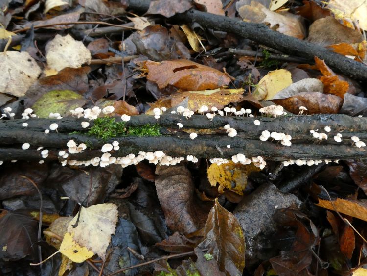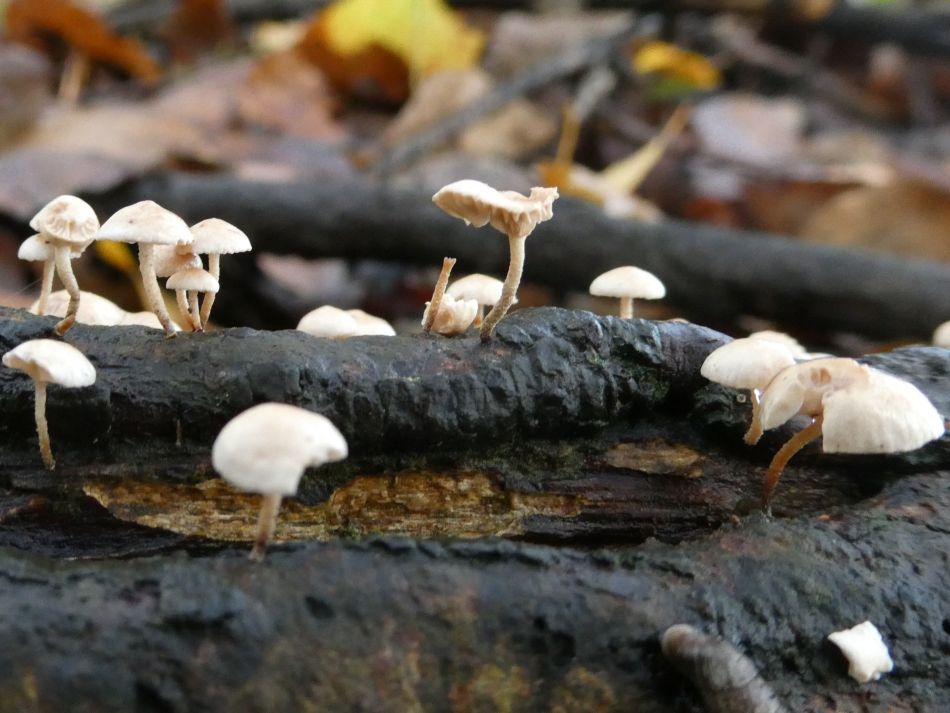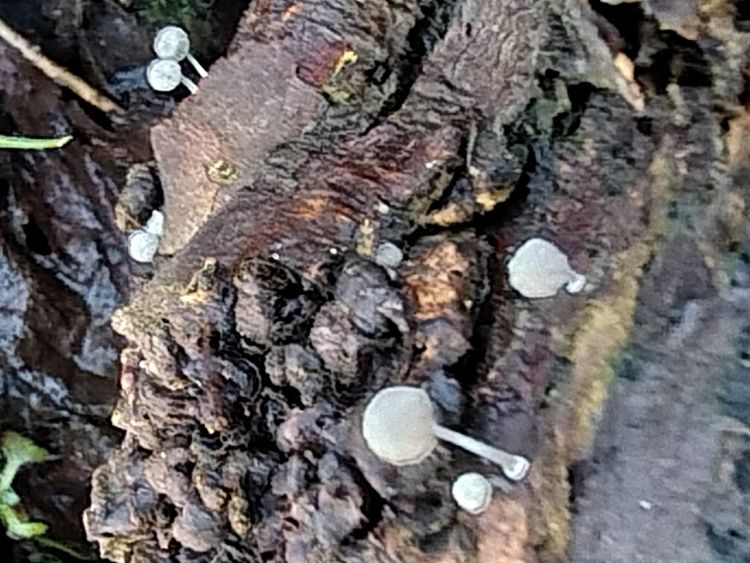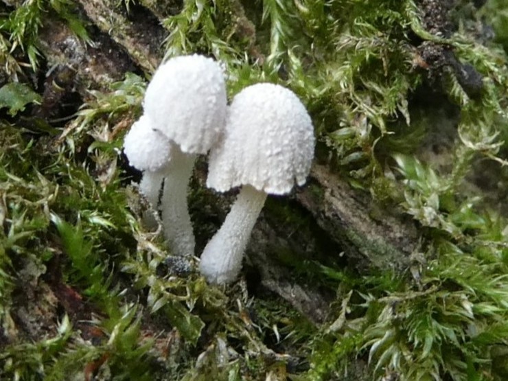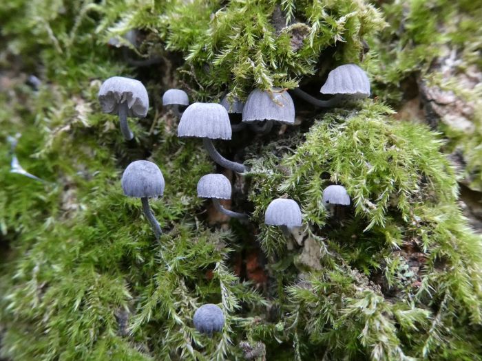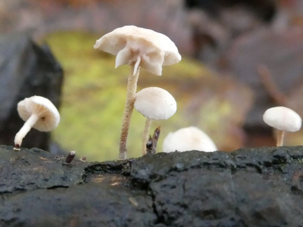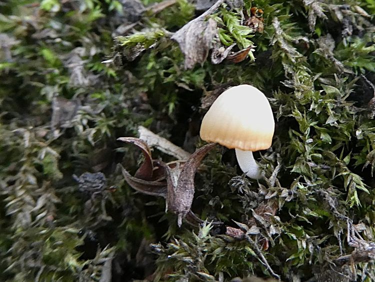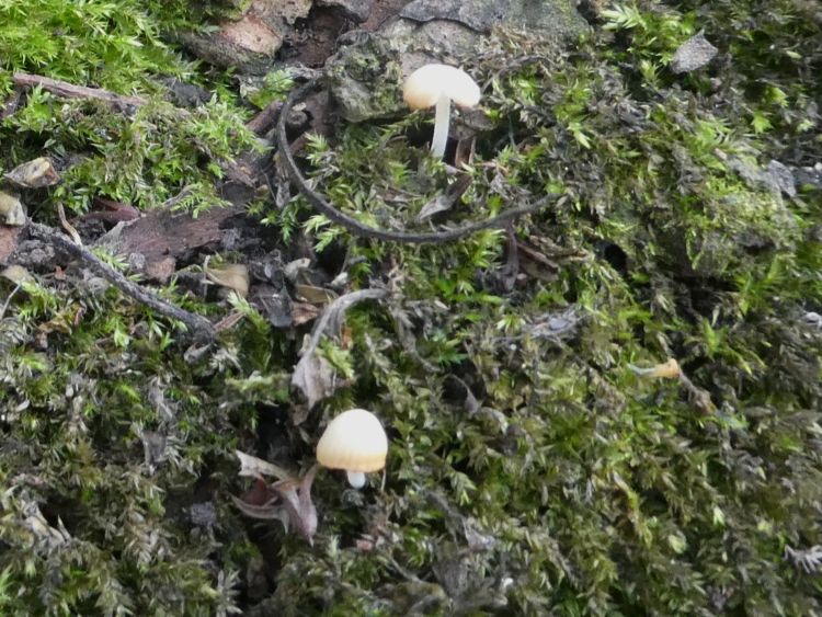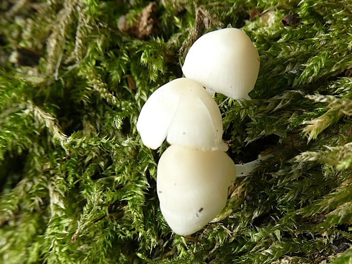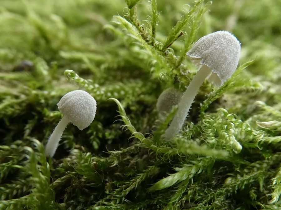All five of these Mycena Fungi are some of the smallest Fungi at 3-4mm across the cap. Found on different fallen moss covered tree.