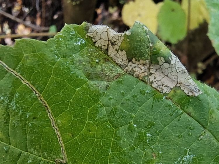 Hazel Leaf mined by Phyllonorycter nicellii Micro-Moth