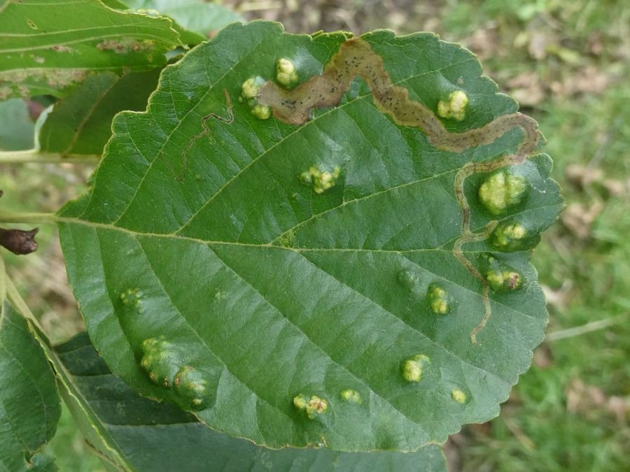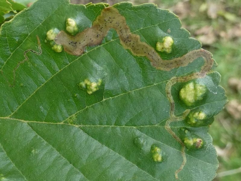 Same leaf as the Alder Galls but highlighting the Moth lavre mine.