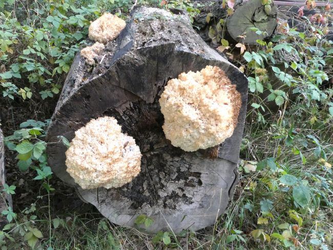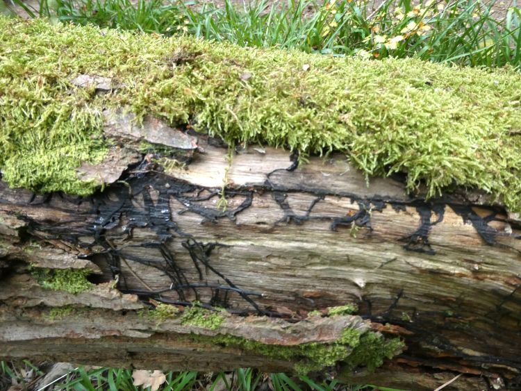 The Honey Fungus (see picture above) spreads by spores from the cap and by these black bootlaces called Rhizomorphs. The Rhizomorphs can be found on the tree roots spreading up the tree beneath the bark and through the soil travelling long distances through the ground to infect other trees. This fungus is the most dangerous parasite of trees causing white rot and arising in the death of the tree. There is no cure making this fungus responsible for large tree losses each year.